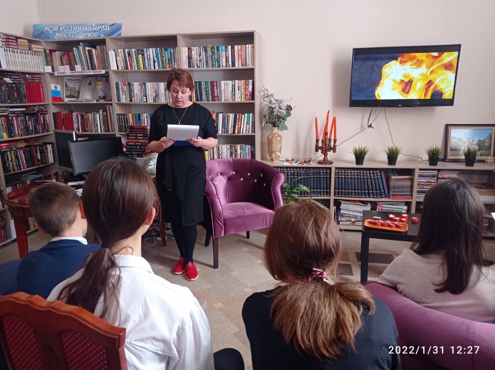 В рамках программы «Культура для школьников» 31 января в ДК, с учениками 7 класса прошла онлайн экскурсия по Блокадному Ленинграду. Дети смогли ощутить атмосферу тяжёлого военного времени и понять все тягости лишений. Также им были процитированы строчки из дневника Тани Савичевой. Мероприятия завершилось минутой молчания, ребята зажгли свечи в память о жертвах блокады.